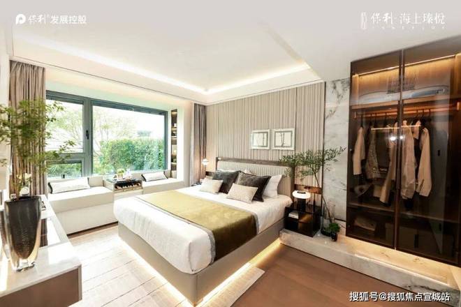 每一间卧房皆设飘窗,为每一颗热爱生活的心,预留一方浪漫天地。主卧参考酒店式套房,拥有衣帽间和独立卫浴间,尊重日常生活的私密感。与此同时,卫浴间的飘窗附设壁龛,可用于收纳,增加实用性。